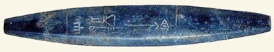The inscription (P247679) on a seal from the royal cemetery of Ur that is now in the British Museum (exhibit BM 122536) reads: ‘mes-kalam-du10 lugal’, (Meskalamdu, the king). Given the find spot, we might reasonably assume that Meskalamdu was the king of Ur. However the inscription (RIME 1.13.5.1, P431203) on an eight-sided bead from Mari (illustrated above and discussed below) reads: