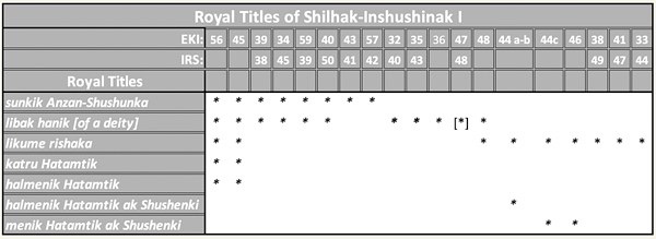 The surviving epigraphic evidence from this period suggests that the Elamite rulers of the 15th-14th  century BC  introduced the title of ‘king of Susa and Anshan’ to the royal titulary, although they are also known to have used the shorter ‘king of Susa’.