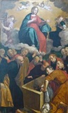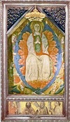 This venerated altarpiece (early 15th century) of the Assumption of the Virgin is the autograph work of the Maestro dell’ Assunta di Amelia. It is usually under a cover in the Cappella dell' Assunta, in the left transept of the Duomo, but it is displayed to the right of the high altar in May and for a week in August.