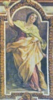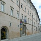 Cardinal Bishop Paolo Emilio Rondanini commissioned the frescoes of this room in Palazzo Vescovile, which are attributed to Giacomo Giorgetti. They depict the the Rondanini arms and personifications of the virtues claimed for the family. This web page on the site of GER-SO Srl illustrates their work on the restoration of these frescoes after the earthquake of 1997.