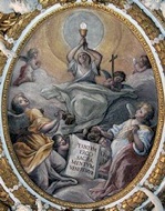 He also provided a design (1668) for the stucco decoration of the vaults and executed an oval fresco (1668) there, which depicts an allegory of the Eucharist. Work on this chapel then seems to have been halted, probably for financial reasons.