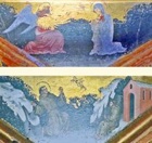 •the healing of a girl whose head was joined to her shoulder (using two images of the mother and daughter to show the scene “before and after”), which occurred on the day of the funeral of St Francis; and