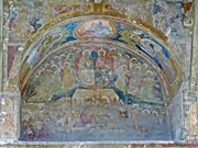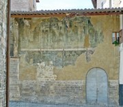 The entrance wall (which is the left wall of the oratory) contains a number of interesting but damaged frescoes: