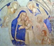 This fresco, which is usually attributed to an unknown follower of Simone Martini, originally depicted the Madonna and Child enthroned with SS Francis and Clare, who interceded for Assisi.