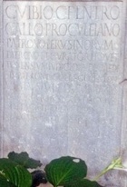 This inscription commemorates Gaius Vibius Gallus Proculeianus, the great-grandfather of the future Emperor Gallus (251-3). The statue of him that once stood on this base was commissioned by his own “dearest grandfather”, Vibius Veldumnianus. He had been a patron, decurial judge and aedile in Perusia and patron of a guild (perhaps the woolworkers’ guild) there; and also “patronus et curator rei publicae Vettonensium” (defender of the interests of the citizens of Vettona at Rome and treasurer (curator) on behalf of the Roman authorities. The inscription on the side gives the date: