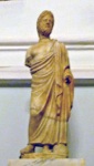 These three small statues were probably found in the same Roman domus in Bevagna in the 18th century. They were taken to Rome in 1812 and are now in the Sala delle Colombe, Palazzo Nuovo, part of the Museo Capitolino, Rome.