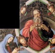 •God the Father in a mandorla, with a half-length figure of the Virgin to the left (now seen in the third surviving fragment); and