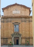 The inscription high up on the facade commemorates the legacy of Monsignor Fuccioli and a restoration of the exterior of the church by Bishop Pietro Boscarini after the earthquake of 1798.