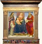 The panel depicts the Madonna and Child with SS John the Baptist and Jerome. The kneeling figure in white is probably the Blessed Giovanni Colombini da Siena, who founded the Gesuati’s convent in Città di Castello in 1365.