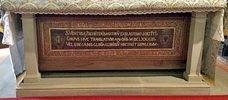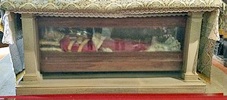 The relics of St Ventura are reserved under the high altar. The front panel of the coffin, which can be detached to reveal the relics, carries an inscription that records their translation to the church in 1683.