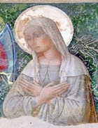 Angelina died in 1435 and was buried in San Francesco (as was usual for the sisters at Sant' Anna). After a miracle that occurred in 1492 at her original grave, her body was exhumed and found to be in tact. Her relics were then placed in a new reliquary opposite that of the Blessed Angela of Foligno. Her cult was confirmed for Foligno in 1825.