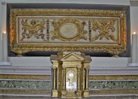 [The relics have been temporarily transferred to the Oratorio del Gonfalone while the church is repaired after the earthquake of 2016.]