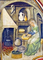 ✴the kitchen of the house at Bethany, in which Martha is at work gutting a fish (on the far wall, detail illustrated here);