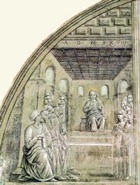 These frescoes depict scenes from the later life and the Passion of Christ. The Rampeschi arms appear under the scene of the resurrection: these probably belonged to Sister Maria di Giovanni Pietro de’ Rampeschi, who was documented at Sant’ Anna in 1573. These frescoes are attributed to Camillo Angelucci da Mevale.