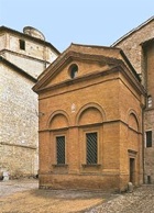 Retrace your steps along Via Umberto I to the ex-church of Santa Maria di Betlem on the right, at the junction of Via dei Monasteri (sketched but unnamed on the sketch map above), and take a short detour by turning right along it. This road, which is runs parallel to and between the walls of ca. 1240 and those of 1328, was so-named because it housed five nunneries: