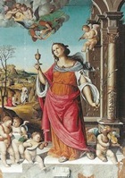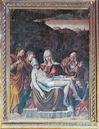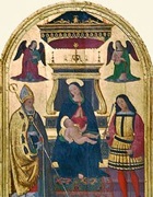 This altarpiece, which is signed by Virgilio Nucci and dated by inscription, is the earliest securely dated work by this artist. It came from the Duomo and is now in the deposit of the Pinacoteca Civica.