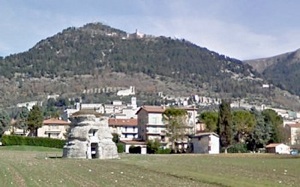 Walk II forms a circuit around Gubbio, taking in the site of Roman Iguvium (on the plain in the foreground of this photograph) and the Basilica di Sant’ Ubaldo, high up on Monte Ingino (and fortunately reached by cable car).