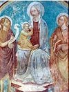 A venerated fresco (15th century) of the Madonna del Latte with SS John the Baptist and James that is attributed to Bartolomeo da Miranda (above) was originally in a wayside tabernacle until the church of Santa Maria della Pace was built to house it. Andrea Polinari restored the fresco in 1603 and it now forms the altarpiece of the high altar.