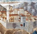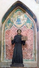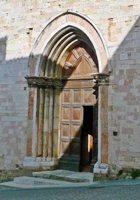 The Blessed Angelus of Foligno founded the Augustinian convent at Montefalco in 1257, only a year after the “grande unione” had given rise to the order. He acquired what had previously been the ancient parish church of Santa Maria del Popolo (also known as Santa Maria de Plateola), which stood on the opposite side of the Corso from the present church, inside Portone di Santa Maria (towards the viewer in the photograph above). This promoted the settlement of a new suburb that became known as Borgo del Castellare.