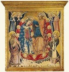 A surviving document records that Pietro Paolo di Giovanni Marino commissioned this panel from “Francesco pentore” in 1486. The inscription along the top of the frame again records Pietro Paolo di Giovanni Marino, and gives the date 1487, while the inscription at the bottom identifies the artist as Francesco Melanzio. This is his earliest known work.
