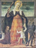 Blessed Illuminata was a colleague of St Clare of Montefalco, and gave important evidence in the process for her canonisation. She died in 1310 and was buried in Sant’ Agostino. Blessed Chiarella joined the same nunnery as a child, just months before St Clare of Montefalco died (in 1291). She subsequently founded an Augustinian nunnery in her native town of Giano dell’ Umbria, where she died in 1345. When this nunnery closed, her relics were moved to join those of Blessed Illuminata.