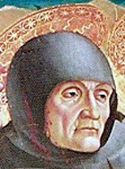 ✴St Bonaventure, who had been canonised in 1482 (centre left). Like St Louis of Toulouse to his left, he wears a sumptuous cope (indicating ecclesiastical office) over his Franciscan habit; and