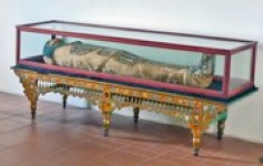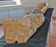 The inscription on this wooden sarcophagus records that it was originally used for the burial of Ramose, son of Amenhotep, priest of Horus. It therefore probably came from the necropolis of Edfu. It was later used for the mummy (4th century BC) of a young woman (displayed separately). The historian Edoardo Martinori brought the sarcophagus and its new mummy from Egypt to Narni in 1920, and his son subsequently gave them to the Commune.