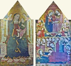 This double-sided panel, which is attributed to the Maestro di Narni del 1409, seems originally to have served served as a processional banner. It was first recorded in 1872 in the sacristy of San Domenico, although this was not necessarily its original location. It could be the banner from Santa Maria Impensole that was used in the annual procession held on the feast of the Assumption of the Virgin.