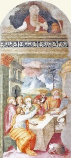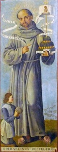 ✴the Blessed Bernardino of Feltro carries his usual attribute, the symbol of the Monte di Pietà.