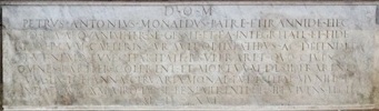 A memorial tablet to the right of the entrance wall to the Cappella Nuova seems to have belonged to a monument that Giovanna erected for her husband in 1516. The encomium translates: “His father having been exiled by tyranny, he [i.e. Pietro Antonio] nevertheless conducted himself with equanimity and care for the republic ... with such integrity and faith that no one surpassed him in public charity”.