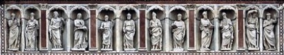 ✴Antonio Federighi (in 1451-6) seems to have been responsible for introducing the row of niches for twelve statues of the apostles above the rose window in order to correct its proportions.