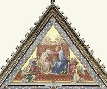 The new mosaic began to deteriorate almost immediately. The present mosaic (illustrated above), which also depicts the Coronation of the Virgin, was installed in 1842-7. [It is based on a composition (15th century) by Sano di Pietro]