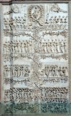 ✴One workshop produced the reliefs for the outer piers, in which the reliefs are carved in rectangular fields separated by carved vines. These depict: