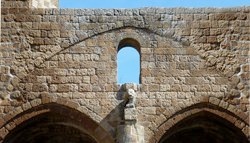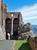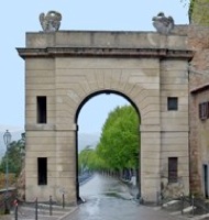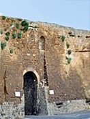 This double-arched gate was once the most important entrance to the city after Porta Maggiore (below). It was originally called Porta Soliano, because it is to the east (where the sun rises). The gate was later bricked up and incorporated between the inner and outer curtain walls of Rocca del Albornoz. The level of the approach was lowered and a smaller pedestrian entrance (postierla) was opened in it.