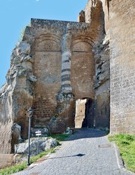 A road led from Via Soliana to a gate named for the nearby Duomo as Porta Santa Maria, from which a steep narrow path was cut into the rock. This gate closed and then reopened in the 14th century. It was not heavily used by the 16th century, and the Commune allowed the nuns of the Monastero di San Bernardino to close it, this time definitively, in 1562. [An access point to the Anello della Rupe (ring around the cliff) ...]
