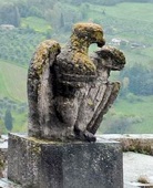 These figures, which were removed in 1860, are both badly damaged. The former, however, still retains its head and arms: the right arm is raised in blessing and the left hand holds a book that has been identified as the Liber Sextus delle Decretali (1298). The form of headgear is that adopted by Boniface VIII after he had inaugurated the first Jubilee Year in 1300. The figures are now in San Francesco.