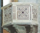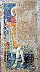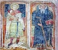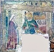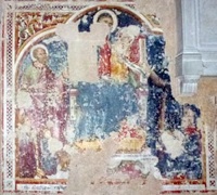 Unfortunately, all the other sculpted components of the monument have been lost. The lower part of the fresco (ca. 1350) of the Madonna and Child with SS Peter and Paul is damaged where it abutted a sarcophagus.