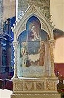 This monument on the composite column that stands in the middle of the right transept is by a follower of Arnolfo di Cambio. It is assembled under a Gothic tabernacle that was probably inspired by Arnolfo's monument to Cardinal de Bray (ca. 1282) in San Domenico.