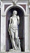 ✴The niche to the left the entrance to the Cappella Nuova, which originally housed the figure (1554-7) of St Sebastian that Giorgio Vasari attributed to Francesco Mosca, il Moschino (which Ippolito Scalza apparently finished when Francesco Mosca left Orvieto in 1554) now houses a figure (16th century) of Adam (attributed).