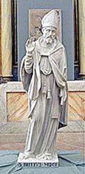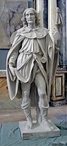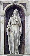 These marble figures by Fabiano Toti were originally in the Cappella Nuova, where they flanked the altarpiece of the Madonna della Stella. They were documented in 1632 on the counter-facade of the Duomo.