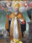Ludovico Jacobili (referenced below, at p. 764) believed that St Fulgentius had died during his torture by Totila’s soldiers, although Gregory I (above) had made no such claim. He dated the death to the 3rd December ca. 546. Totila was then summoned by his soldiers and found St Fulgentius not only dead but still in the act of oration. He was so impressed that he and his followers reverently carried the body for burial at San Vittore (see the page on Ocriculum).