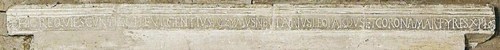This text is inscribed in a single line on what was probably an architrave. Gianfranco Binazzi (referenced below, at p. 7) observed that: