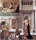 ✴Two panels of the figures of the Annunciation (illustrated above), which are attributed to Bartolomeo Caporali, are exhibited in Room 16. The proposed dating is supported for the first two panels by the fact that some of the details of the Virgin’s study seem to have been inspired by the Gonfalone dell’ Annunziata (1466), which is attributed to Nicolò Liberatore, l’ Alunno and which is now now in Room 12 of the gallery.