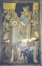 This panel is sometimes associated with payments made to Benedetto Bonfigli and Bartolomeo Caporali in 1467-8 according to the will of a merchant, Francesco di Pietro for an altarpiece for the Cappella di San Vincenzo Ferreri. However, this work would almost certainly have included a figure of St Vincent: that does not rule out a polyptych with the present panel at its centre, although, given its size, the panel was more likely to have been an independent altarpiece.