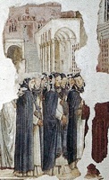 ✴a group of Dominicans about to enter the side door of the Duomo (before its reconstruction in the 15th century), with the Loggia di Braccio extending as far as the (later destroyed) Palazzo del Podestà.