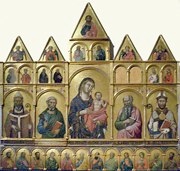 The polyptych seems to have been inspired by Duccio’s contemporary work, including his polyptych for San Domenico, Perugia (now also in the Galleria Nazionale).