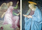 These detached frescoes were painted on the curved exterior wall of the apse of the Cappella della Portiuncula. Like the Crucifixion that remains in situ there (see above), they are attributed to Perugino (or to his workshop). They were plastered over in the 16th century and re-discovered in the early 19th century. The artist Antonio Castelletti is documented as restoring the frescoes of the “Cappella dell’ Annunziata” in 1828, and this seems to have involved the effective repainting of these frescoes. They were detached in 1975 and are now in the Museo della Portiuncula.