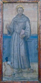 The original frame was recently discovered in the deposit of the Galleria Nazionale, confirming that the altarpiece only ever comprised this single panel. It depicts the standing Virgin and SS Jerome and Francis. It was moved to Santa Maria Nuova in 1540, when it was placed on an altar that subsequently belonged to the della Penna family.