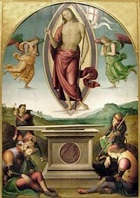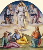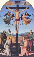 The early works of Raphael owe much to Perugino: Giorgio Vasari commented that, had Raphael not signed what is now called the Mond Crucifixion (1502-3) in San Domenico, Città di Castello, it would have been attributed to Perugino. In 1521-4, the aged Perugino completed Raphael’s unfinished fresco (ca. 1505) in San Severo (see below), and this serves as a sad reminder of the extent to which his style had been overtaken.