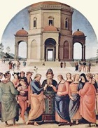 Raphael’s Marriage of the Virgin (1504), which was painted for the Altare di San Giuseppe in San Francesco, Città di Castello, was closely modelled on Perugino’s altarpiece in Perugia.